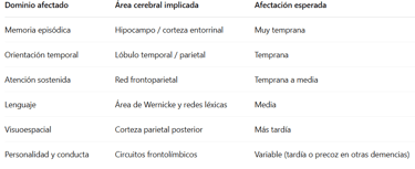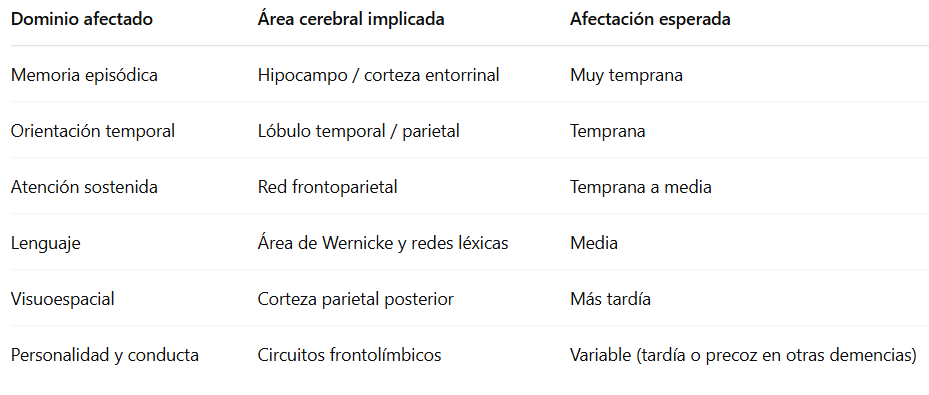 🧠 1. Base en estudios neuropsicológicos y progresión del Alzheimer